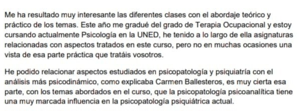 Licenciado en Psicología. Máster en Psicología Clínica y de la Salud. Máster en Intervención en Salud Mental. Máster en Psicopedagogía. Máster en Gerontología. Máster en Psicoterapia Psicodinámica.