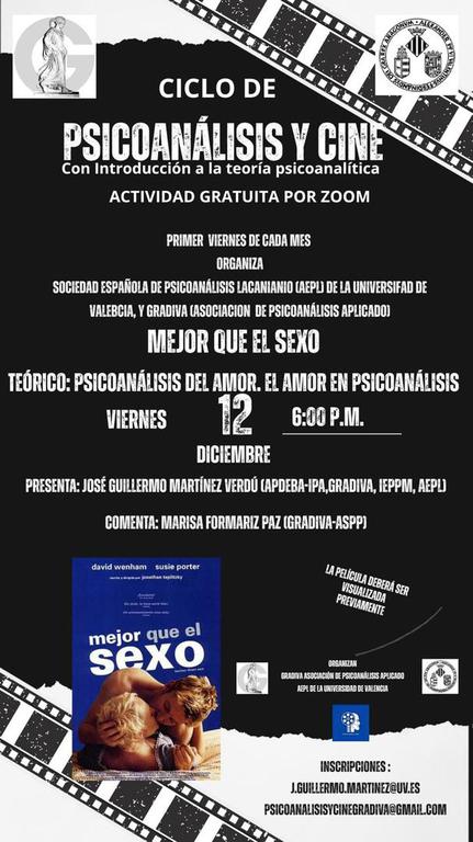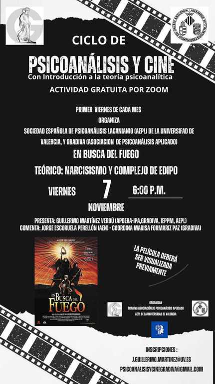 Organiza GRADIVA-Asociacion de Psicoanálisis Aplicado. Asociación Española de Psicoanálisis Lacaniano de la Universidad de Valencia.